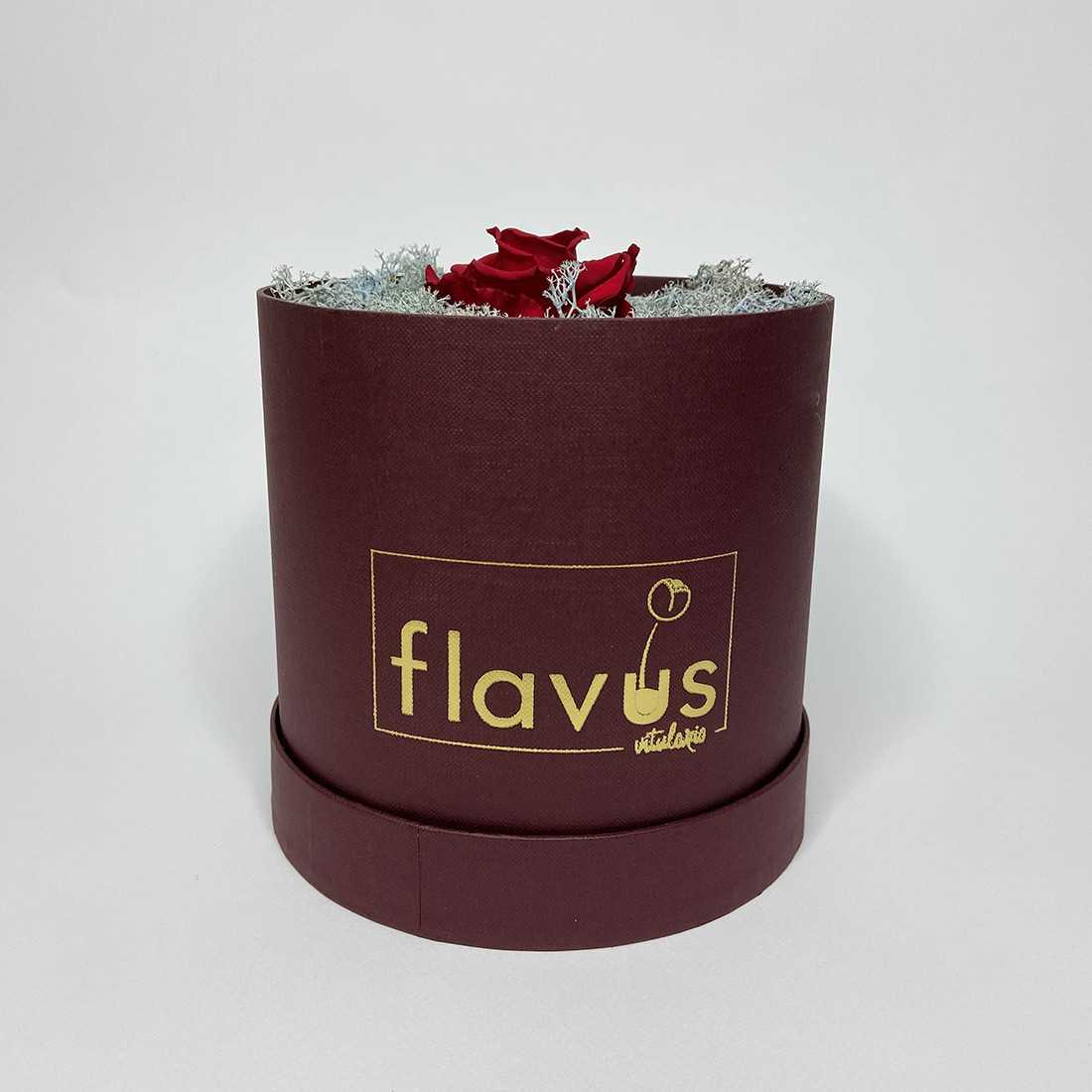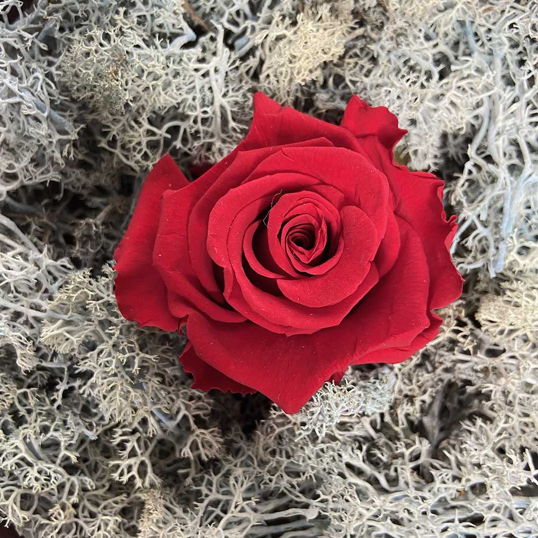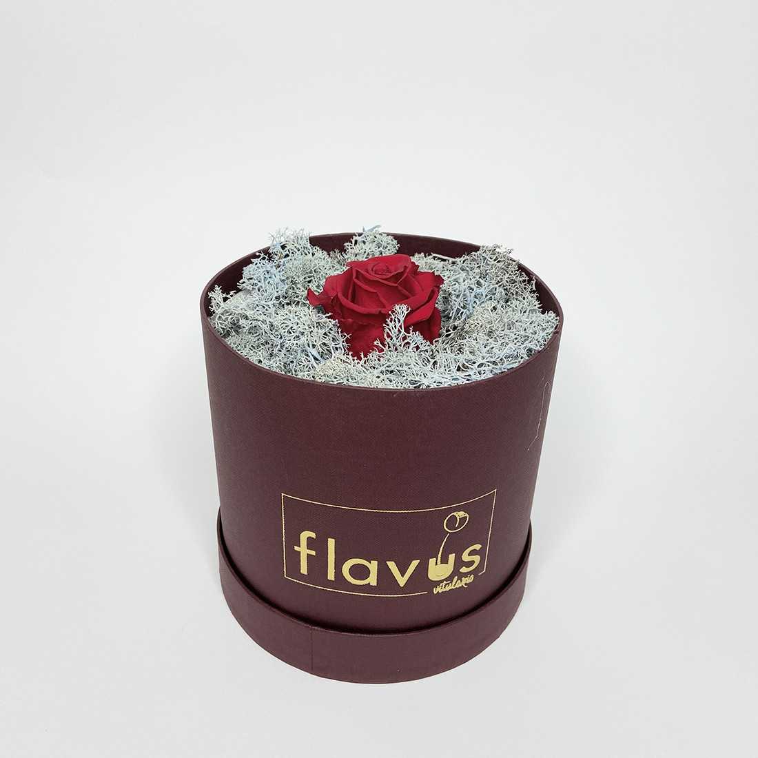 La box contiene del muschio stabilizzato azzurro chiaro con al centro una meravigliosa rosa rossa stabilizzata. Una festa per gli occhi, ideale per un idea regalo davvero originale.