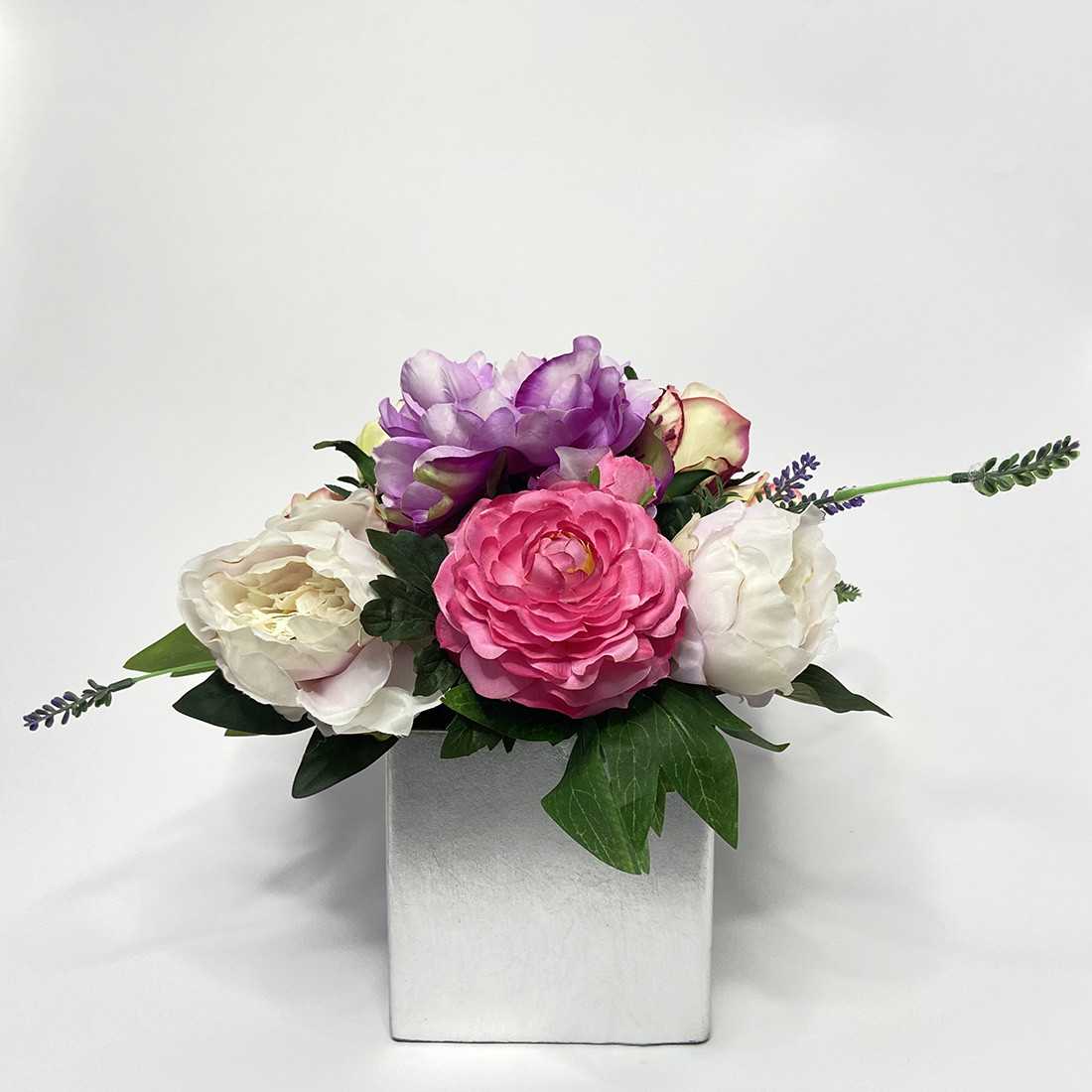Fiori Artificiali Vaso Ceramica Quadrato con fiori artificiali 46,00 € Vaso quadrato grigio con fiori artificiali di elevata qualità. Semplice ed estetico, ideale per la decorazione della casa. Materiale: in ceramica Dimensione vaso: 17 x 16h + Carrello