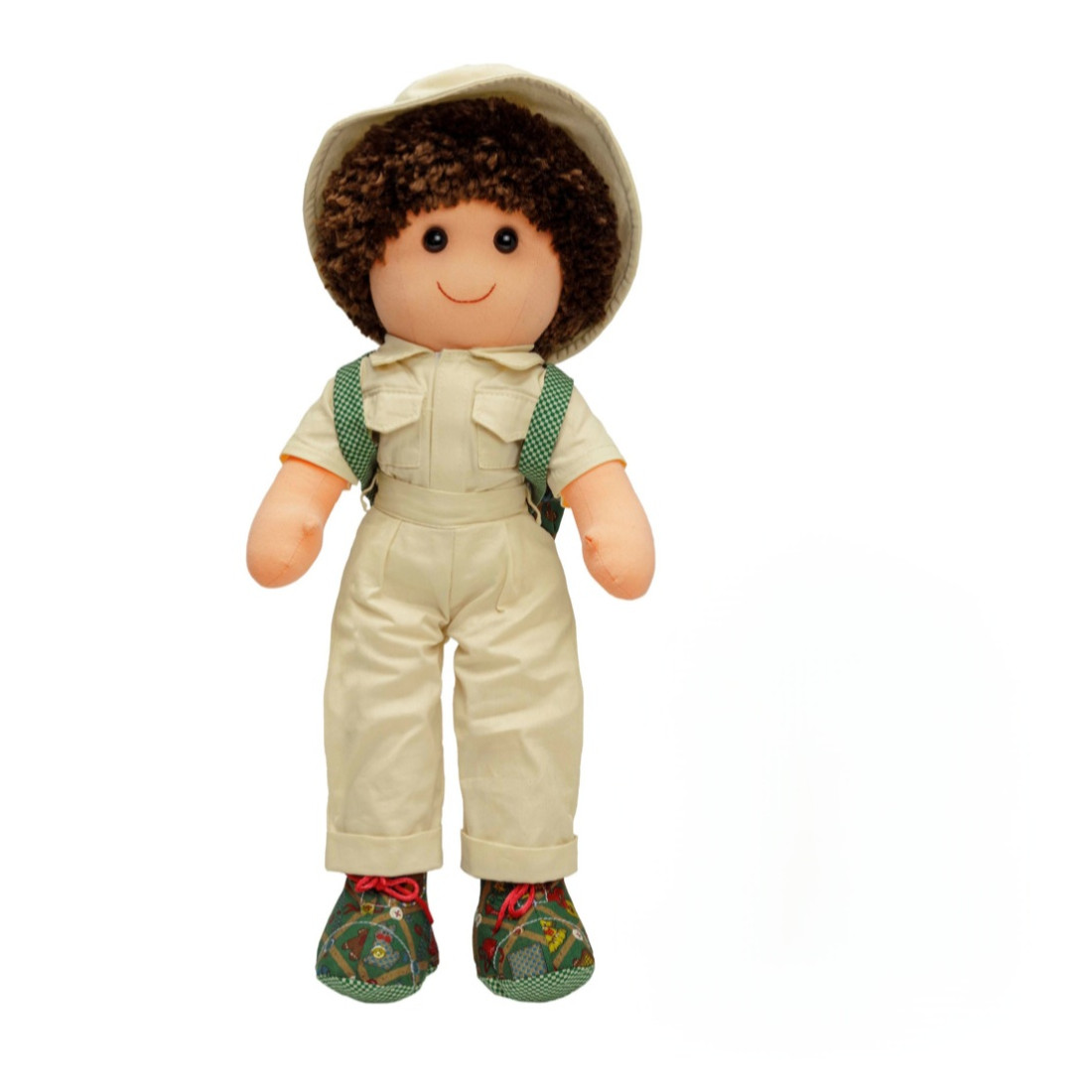 Bambolotto My Doll- Esploratore capelli mori corti. Vestito con maglia con colletto e due taschine color sabbia/pantaloni lunghi con rovescia color sabbia.
