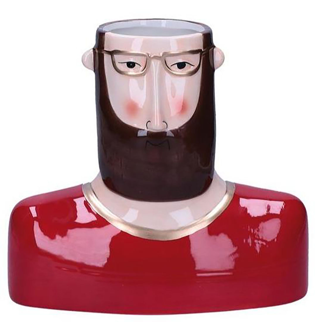 Vaso Testa Beppe oro '' I Robinson '' dal design originale, impreziosita da dettagli di colore nero, oro e rosso sul viso e sul busto. Perfetta come complemento d'arredo per tutta la tua casa ma anche come simpatica idea regalo. E' possibile arricchire il vaso inserendo una composizione di fiori recisi o una piantina artificiali.